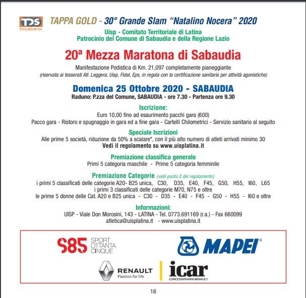 MEZZA MARATONA DI SABAUDIA XX EDIZIONE