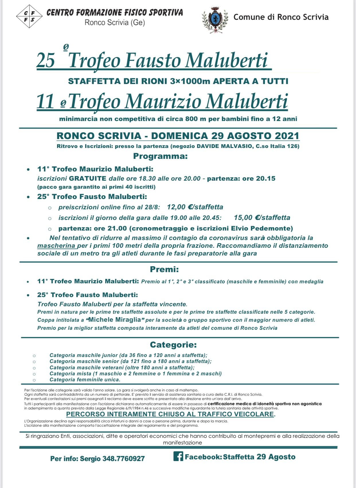Nel tentativo di ridurre al massimo il contagio da coronavirus, sarà obbligatoria la mascherina per i primi 100 m della propria frazione. Raccomandiamo il distanziamento interpersonale tra gli atleti, durante le fasi preparatorie della gara.