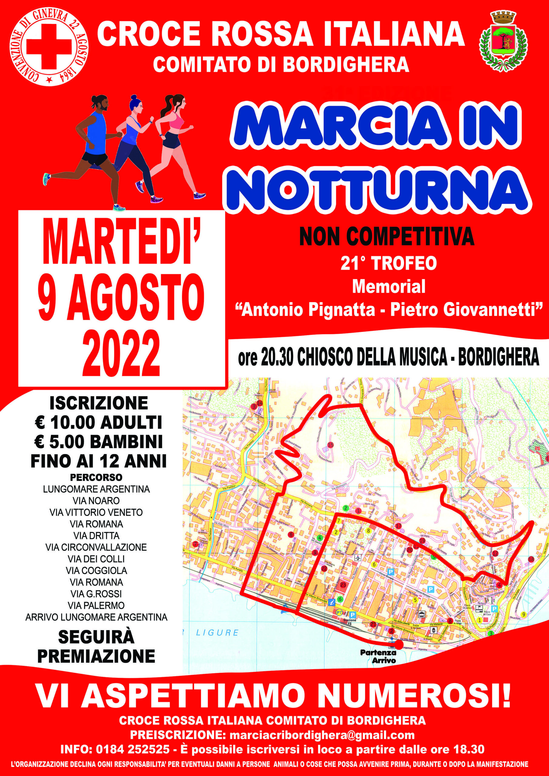 Lungomare Argentina, Via Noaro, Via Vittorio Veneto, Via Romana, Via Dritta, Via Circonvallazione, Via Dei Colli, Via Coggiola, ancora Via Romana, Via G. Rossi, Via Palermo, per concludersi sul Lungomare Argentina.