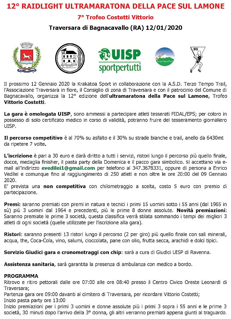 RAIDLIGHT ULTRAMARATONA DELLA PACE SUL LAMONE XII EDIZIONE